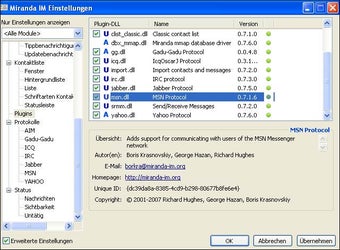 Miranda IM Portable personalisiert der Anwender nach Geschmack und fügt gewünschte Erweiterungen hinzu. Die deutsche Sprachdatei lädt der Nutzer aus dem Internet herunter und kopiert anschließend die TXT-Datei in den Ordner MirandaPortableAppmiranda. Beim nächsten Start von dem USB-Sticks erscheint die Benutzeroberfläche auf deutsch.